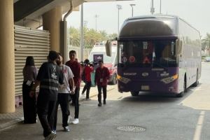 大战在即!中国男篮提前两个多小时抵达球馆 比韩国队早得多