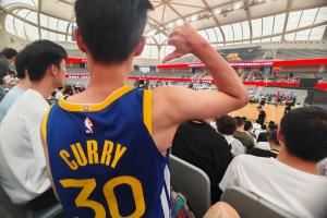 詹姆斯中国行交大活动现场有球迷身着库里球衣前往支持