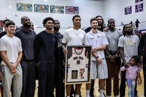 全队出席小贾巴里-史密斯高中球衣退役仪式!火箭队内气氛没谁了