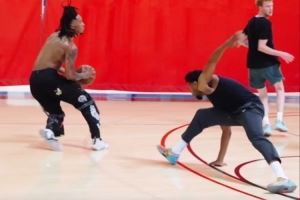 脚踝终结者!卡斯尔训练中晃倒防守 潇洒撤步超远三分飚中🎯