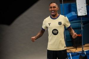 巴萨官方晒莱万、拉菲尼亚身穿科比联名球衣定妆照:曼巴精神