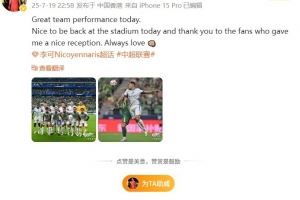 李可社媒:球队今天表现很棒,感谢工体球迷对我的热情欢迎
