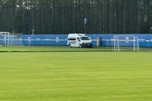 照片来自上周六(7月12日)久事康桥体育训练基地,当时基地训练场正在进行上海申花与青岛海牛的内部教学赛,前面的训练场边,和以往教学赛相比,多了一辆救护车。