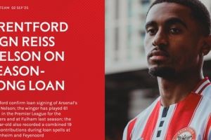 官方:布伦特福德租借阿森纳25岁右边锋雷斯-尼尔森1个赛季