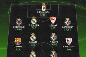 whoscored西甲8月最佳阵:姆巴佩领衔皇马3将,亚马尔、尼科在列