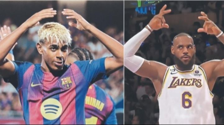 这位巴萨的新10号在亚洲行对阵首尔FC的第二场友谊赛中,开始以这种特殊方式庆祝进球。他打入两球,并用这种庆祝动作宣告自己:捶胸并自我加冕。这一庆祝动作复刻了篮球史上最伟大球员之一、同样自封为国王(King)并作为NBA近二十年标杆的勒布朗-詹姆斯多年来的行为。詹姆斯一直被认为是一位能够创造历史的球员,即使是在他进入NBA之前。而亚马尔作为足球运动员,正追随其脚步,打破几乎所有的早熟纪录。