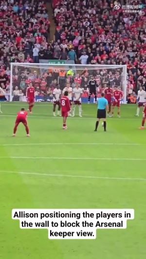 太细节了👍索博任意球前,阿利森指导维尔茨和加克波挡拉亚视线