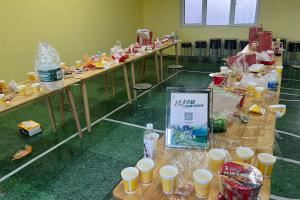 来到青岛西海岸的客队球迷区,人家赛区竟然在客队球迷休息室里准备了一堆吃的喝的,包括但不限于肯德基、方便面、矿泉水。