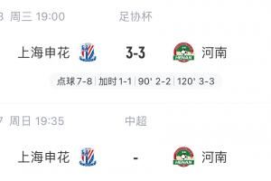 四天后再战!申花与河南鏖战120分钟+点球,本周日双方将联赛相遇