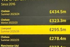 💰英超转会窗砸钱榜单:切尔西4.35亿镑第1,利物浦2.95亿镑第3