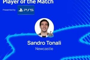 欧冠官方:托纳利当选纽卡2-0毕尔巴鄂竞技全场最佳球员