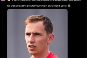 拜仁官方:外租20岁中场兹沃纳雷到苏黎世草蜢,租期一年